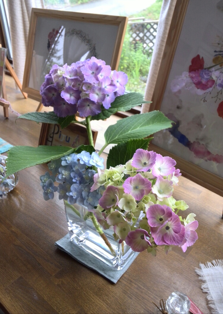 カフェの周りにも三種類の紫陽花達が咲き始めています。