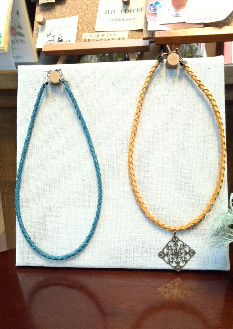 いつもご参加くださるkさんが、手作りの革で編んだネックレスを数点お持ちくだいまして、皆さんのハートを掴みましたっ!