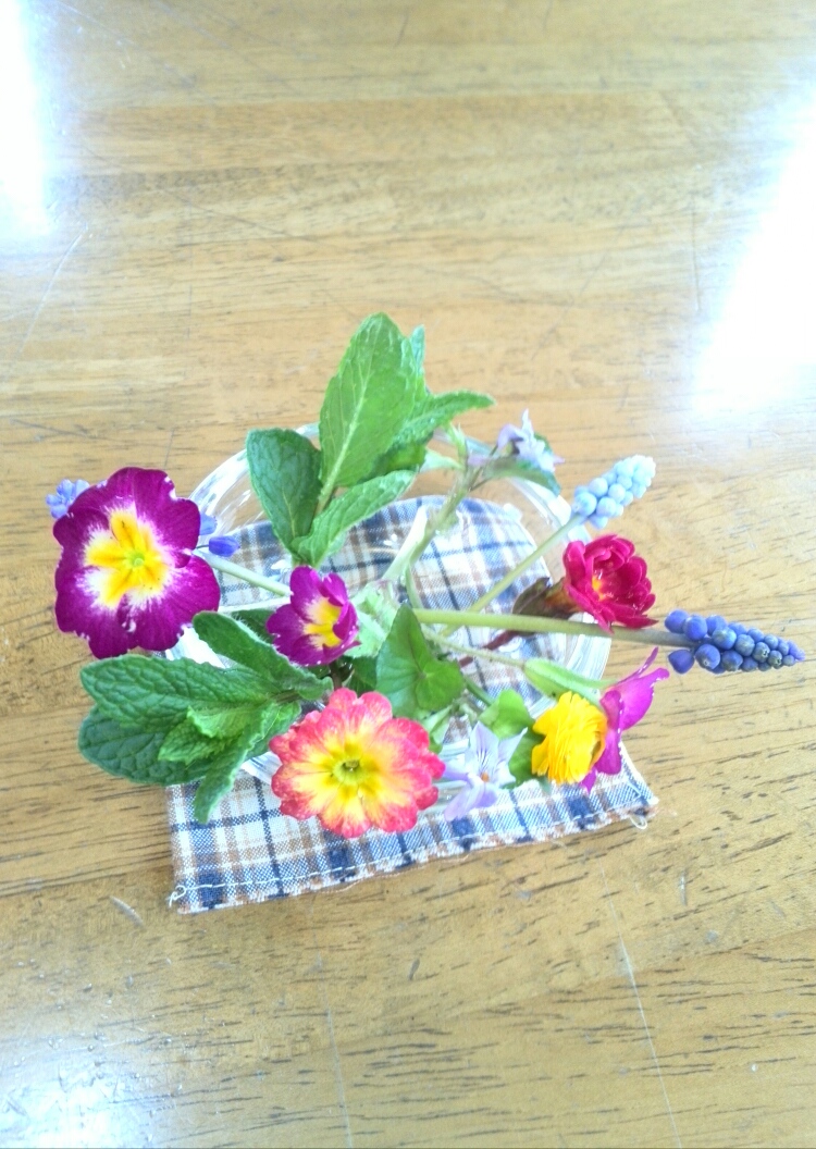 今週Diju カフェのテーブルのお花は「ばっけ」でした。ふきのとうです!