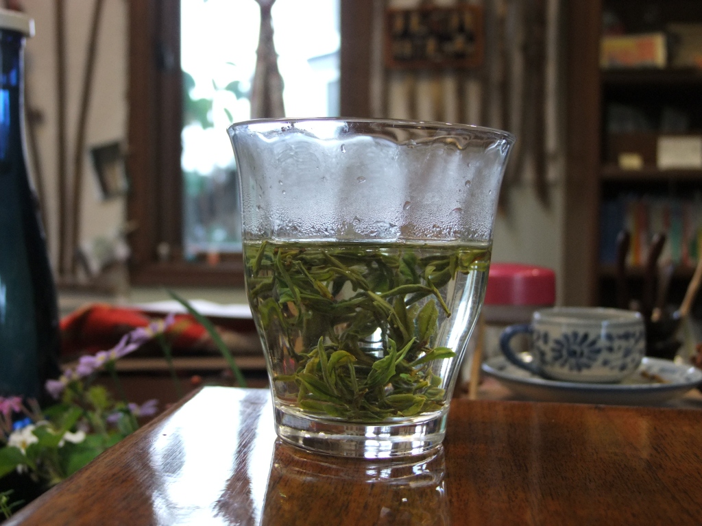 こちらはガラスのコップに直接茶葉を入れ、そこにお湯を注ぎ入れ、茶葉の広がる様子も楽しみます。