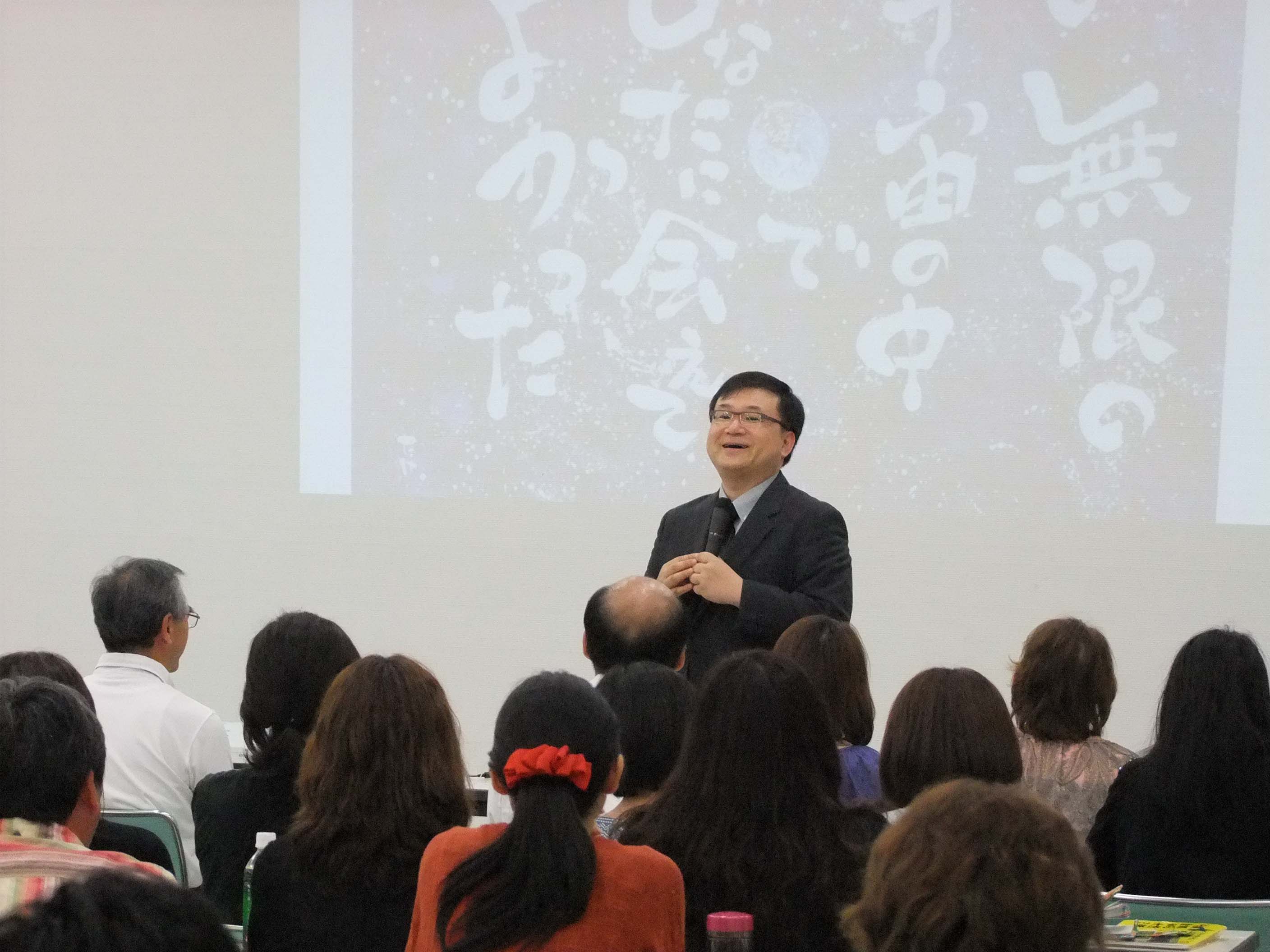 魔法の言葉で講演をなさっている工学博士 五日市氏の講演会を