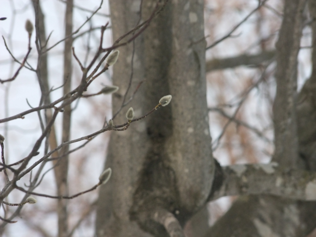 Dijuのこぶしの、ふわふわのつぼみが大きくなってきました。