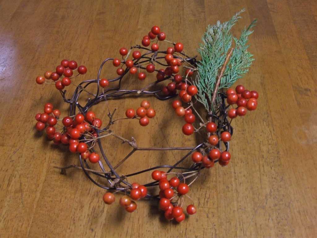 先日、山帰来のリースを作りました。大粒ですごく贅沢な使い方をしてしまいました。