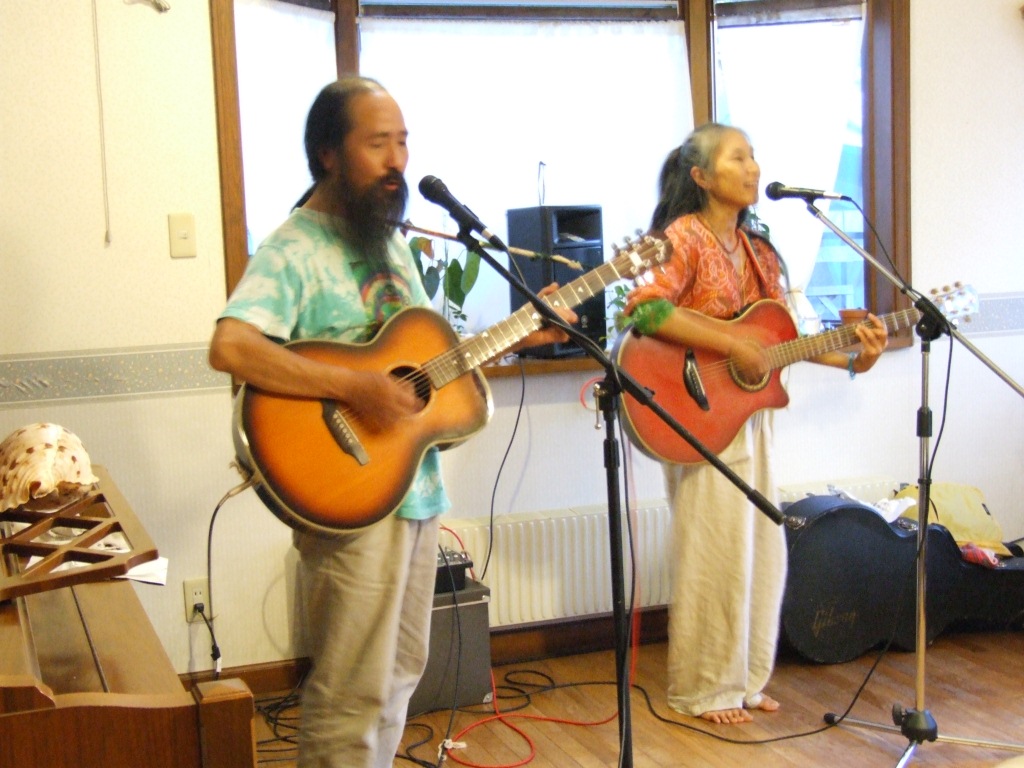 画家の薬師丸郁夫さんと、妻のたか子さんのギターユニット、レインボーバードさんと、
