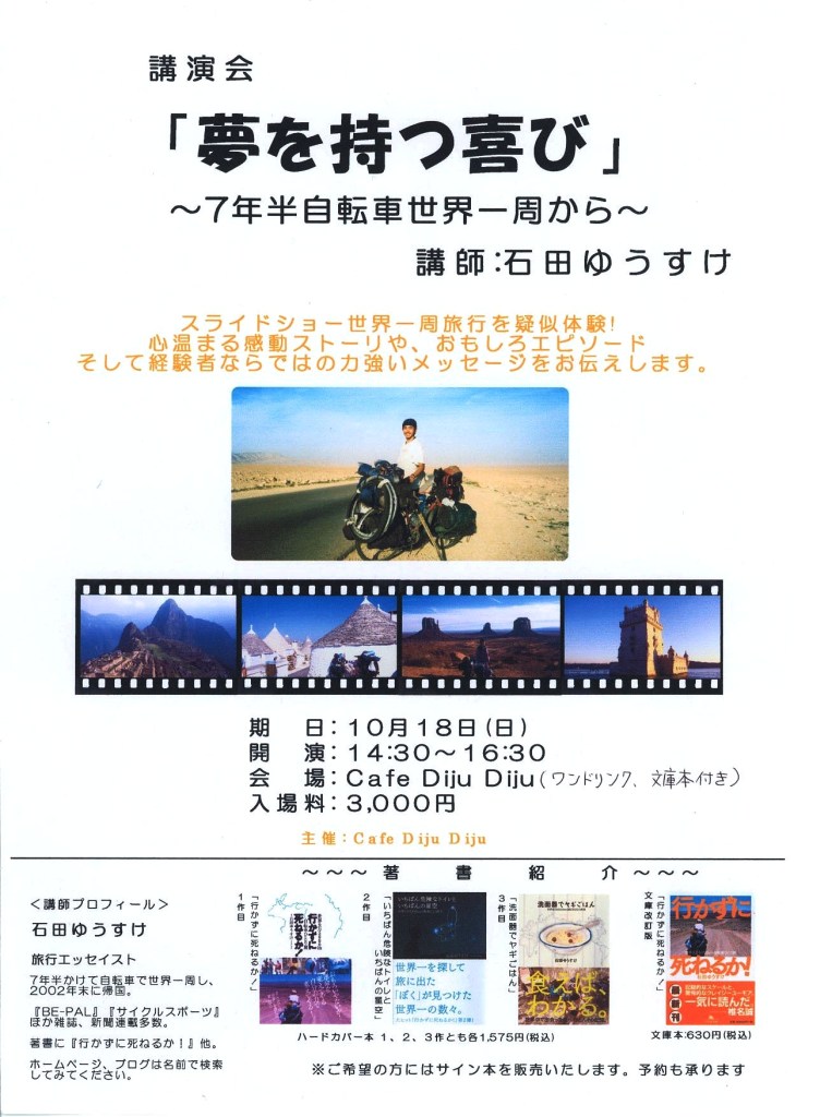 石田ゆうすけさん講演会のお知らせ
