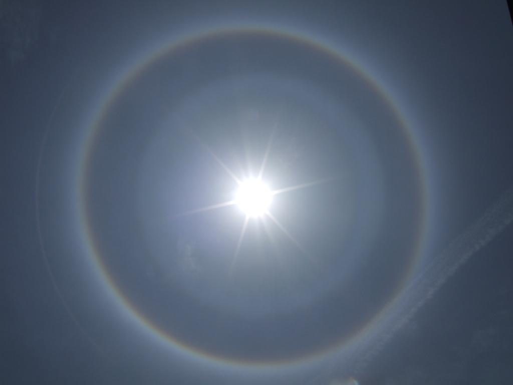 太陽の周りに虹が~。