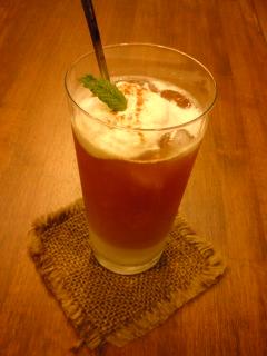写真は新メニューの巨峰のタルトと、アイスロイヤルティー
