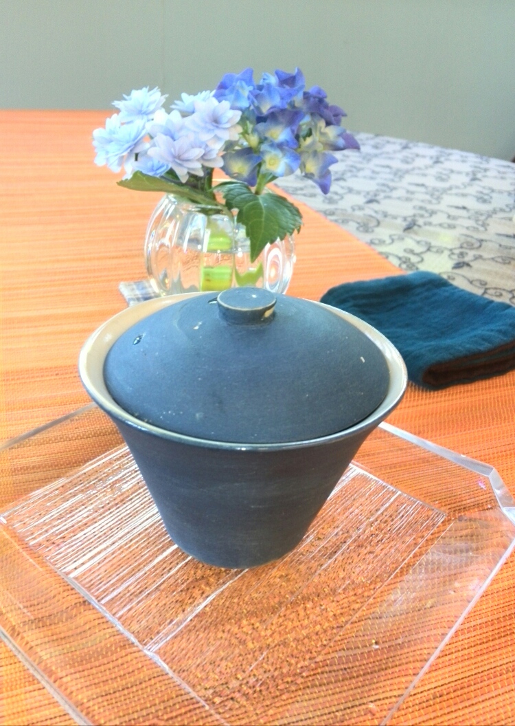 今回は深いブルーカラーの蓋碗(がいわん)でお茶を入れてくださったインストラクターのあゆみさん。